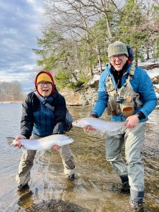 Featured below is Justin and Matteo with gorgeous Steelhead. They were guided by DSR guide George Zervos of “On the Fly Guide Service”.