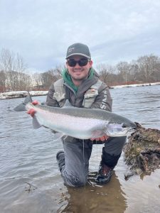 Nine guests joined us on the run today. Most of the guests we spoke to stated that they only landed a few Steelhead. Andrew (featured below) that was guided by DSR guide Mike Ford of “Reel Addicted Charters & Guide Service” was 5/12 on Steelhead this morning.